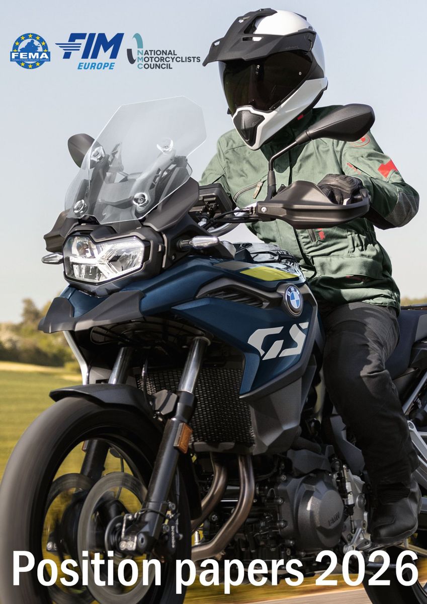 Die Federation of European Motorcyclists’ Associations (FEMA), die Fédération Internationale de Motocyclisme (FIM) und der National Motorcyclists Council (NMC) aus Großbritannien haben gemeinsam eine aktualisierte Fassung von Positionspapieren zu den aktuellen motorradpolitischen Themen veröffentlicht. Diese Allianz aus drei Dachverbänden repräsentiert insgesamt 77 Motorradfahrerverbände aus ganz Europa, nicht nur aus der EU.